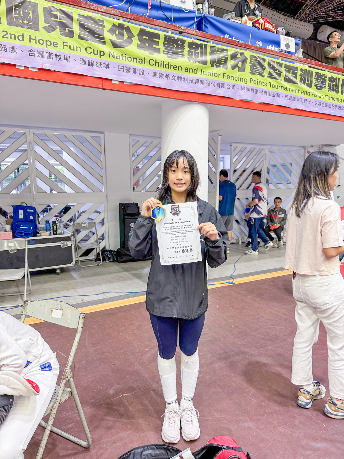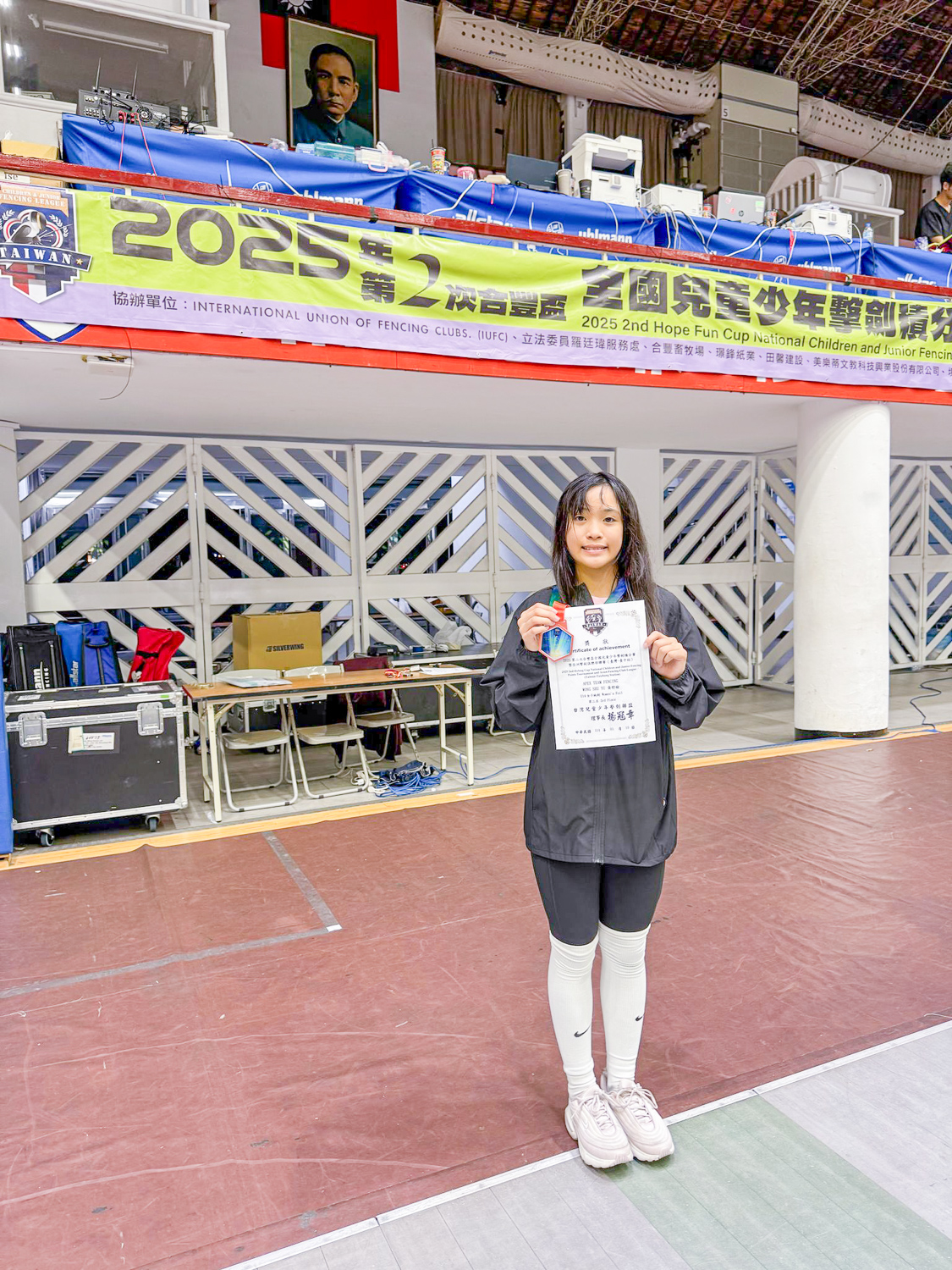 - 好消息!恭賀 5B 黃舒榆 同學於2024年5月18至19日參加由台灣兒童少年擊劍聯盟主辦的2024第二次合豐盃全國兒童少年擊劍積分賽,於U11女子鈍劍(個人) 賽獲得冠軍、U13女子鈍劍(個人) 賽獲得亞軍。恭喜!恭喜!