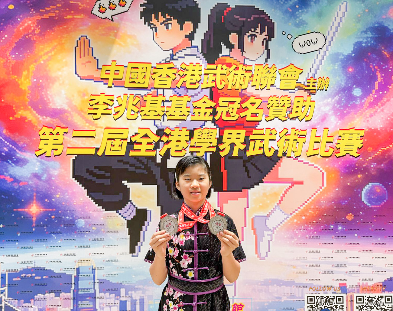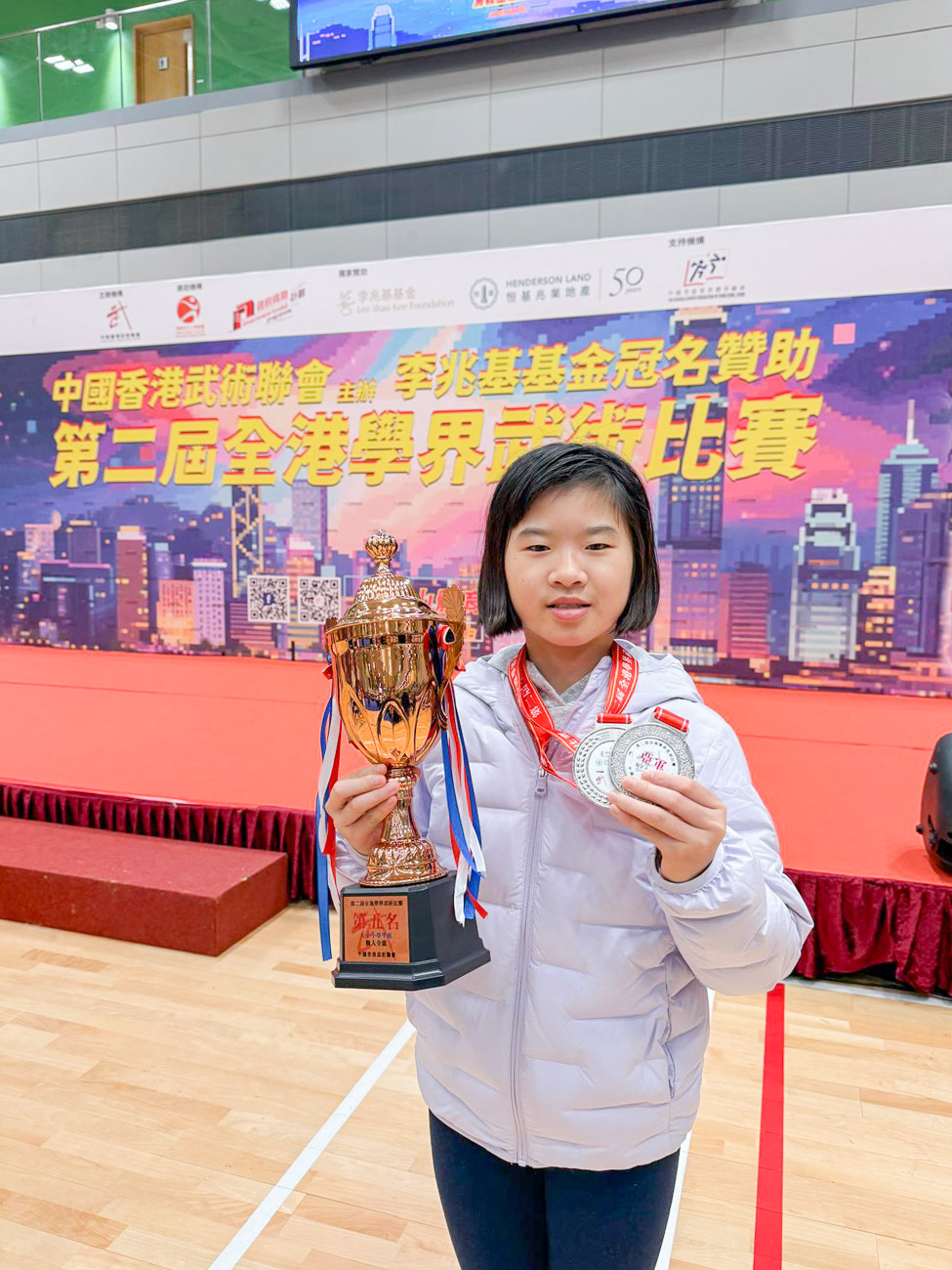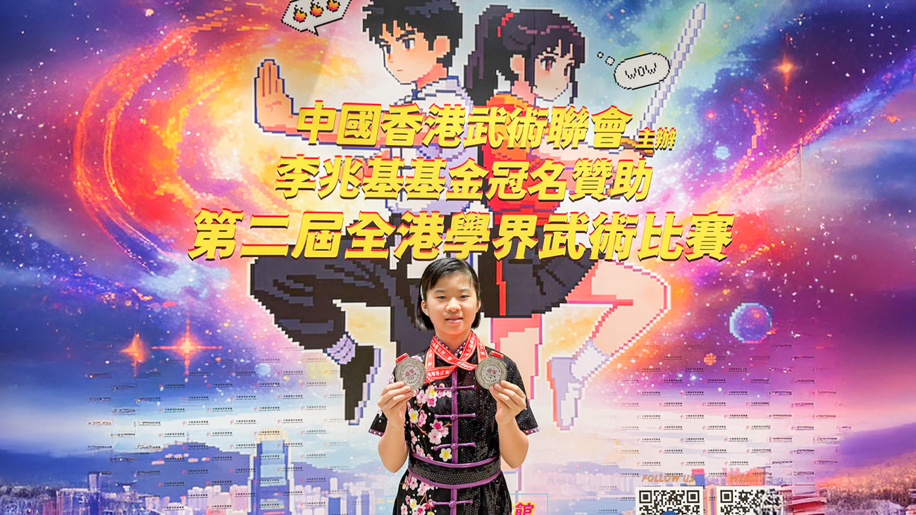 好消息!本校武術隊 6L鄒緻然 同學 於2026年2月8日參加由中國香港武術聯會主辦的「第二屆全港學界武術比賽」,於女子小學甲組長拳及刀術兩個項目中均勇奪全港亞軍,另外在女子小學甲組全能項目中亦獲得全港第五名。恭喜!恭喜!