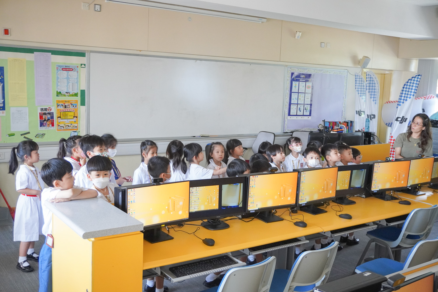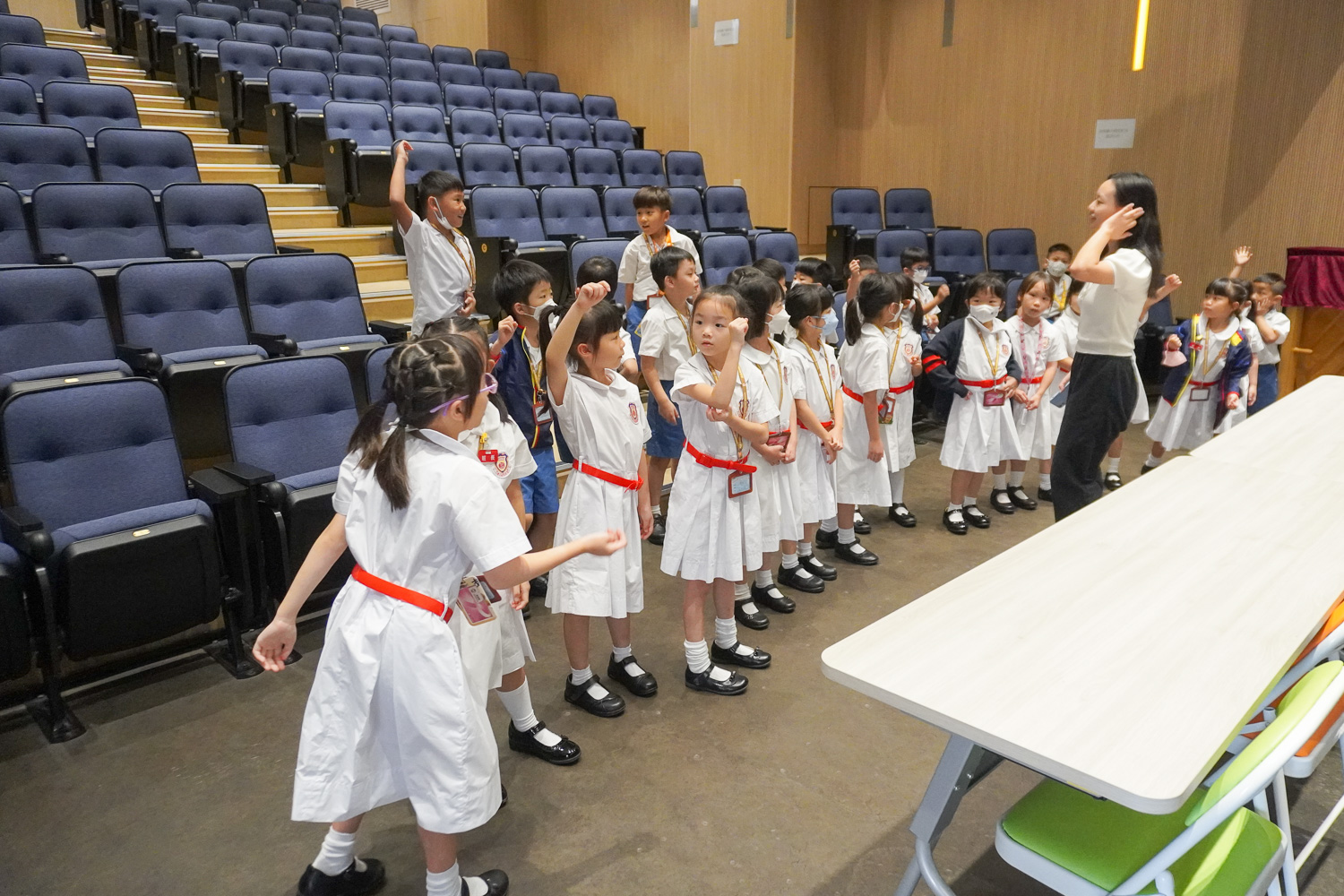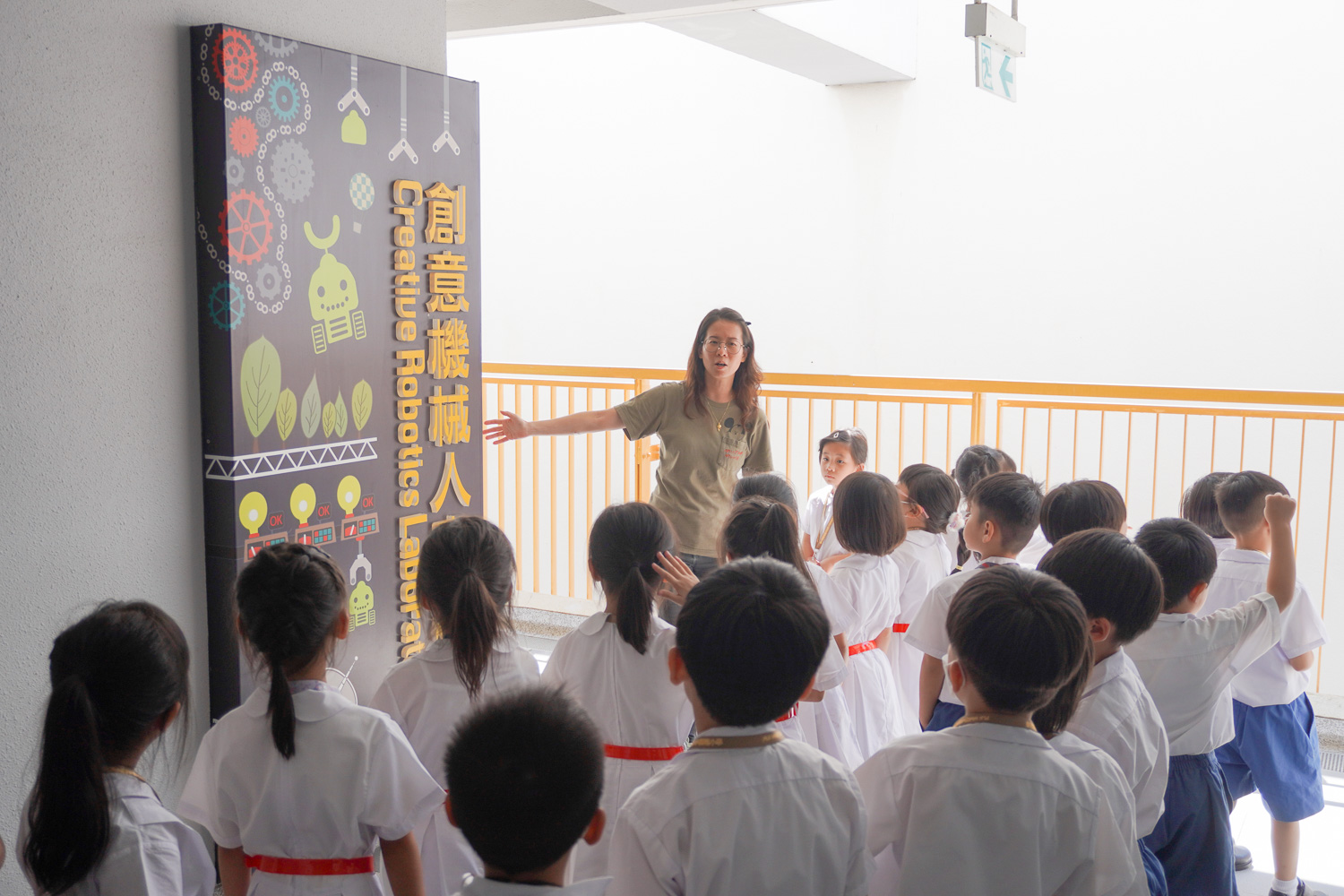 開學的第二週,老師帶著小一學生遊校園。同學們都帶著好奇心出發,跟從老師的帶領參觀了演奏廳、常識室、創科中心、機械人室、電腦室、視藝室、圖書館、英語室、溫室、攀石牆等,愉快地上了一課。