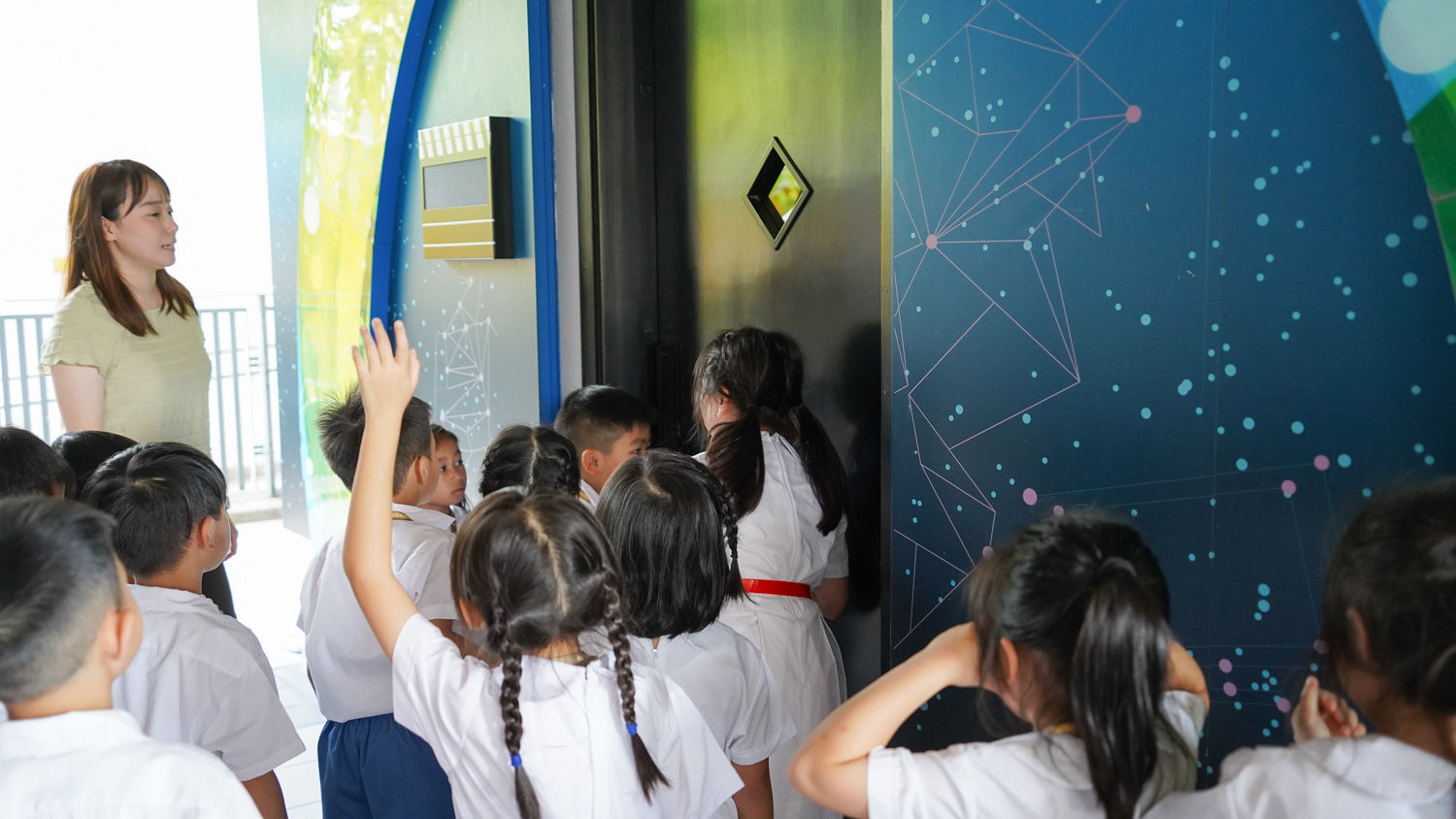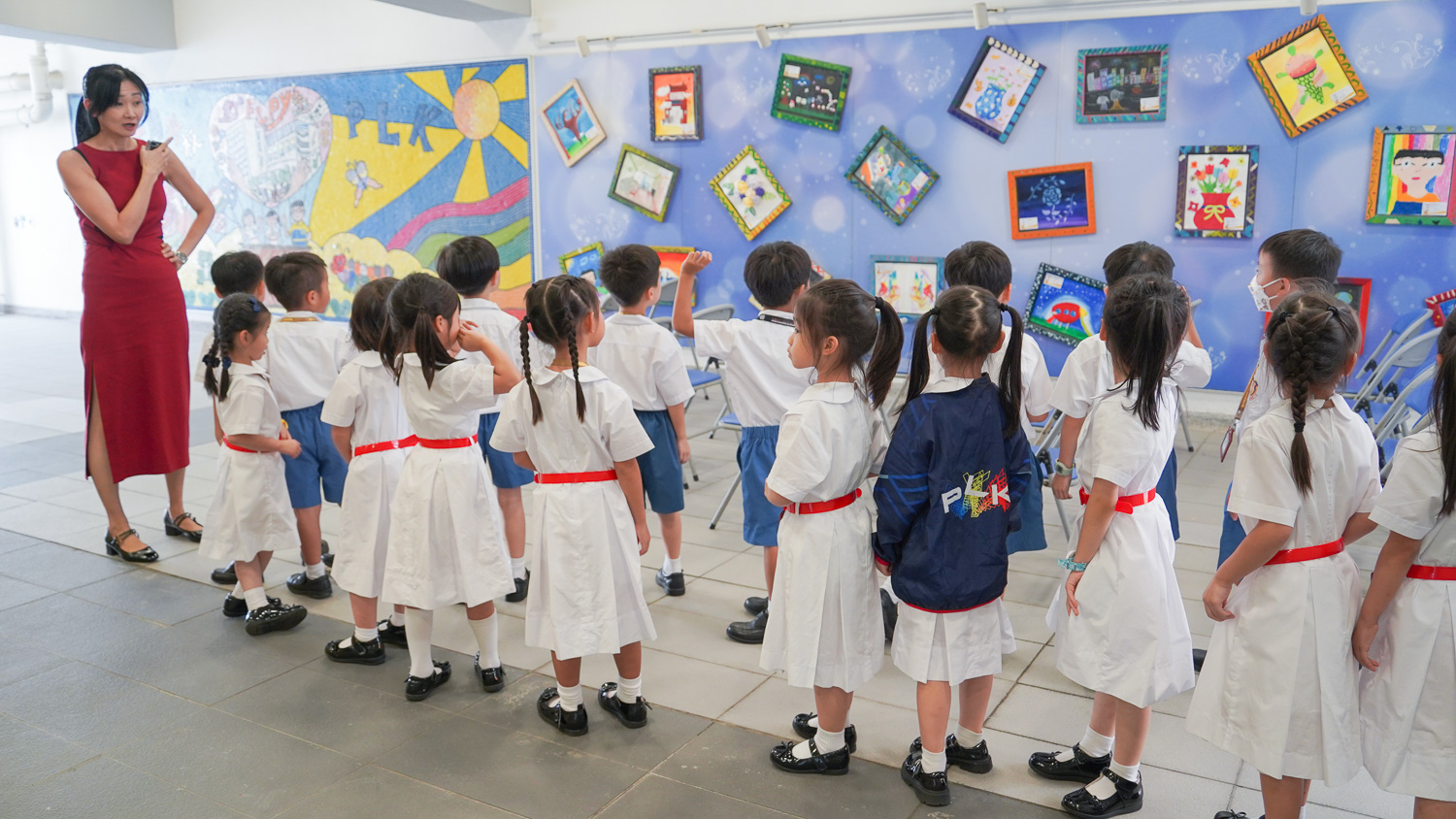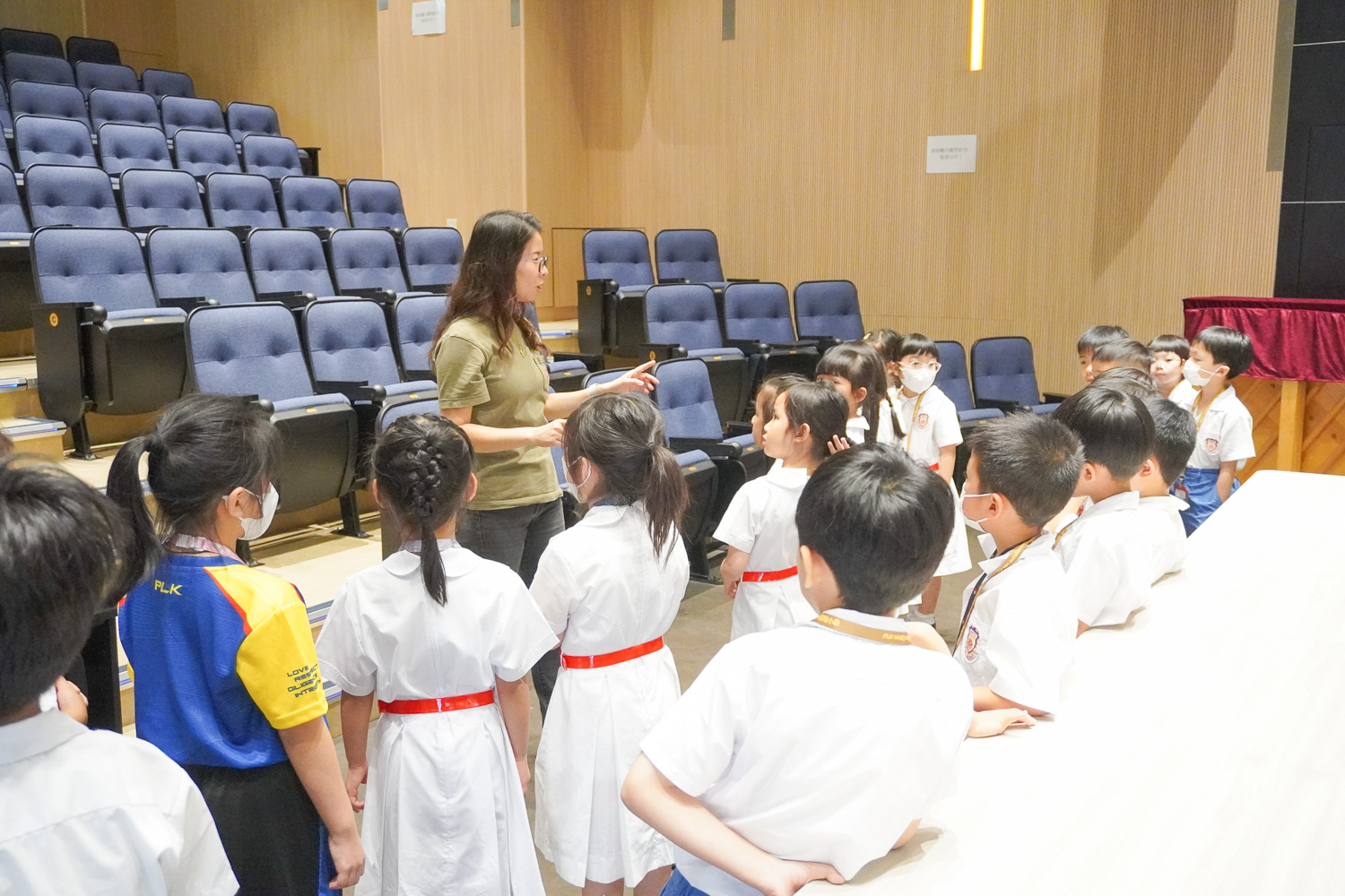 開學的第二週,老師帶著小一學生遊校園。同學們都帶著好奇心出發,跟從老師的帶領參觀了演奏廳、常識室、創科中心、機械人室、電腦室、視藝室、圖書館、英語室、溫室、攀石牆等,愉快地上了一課。