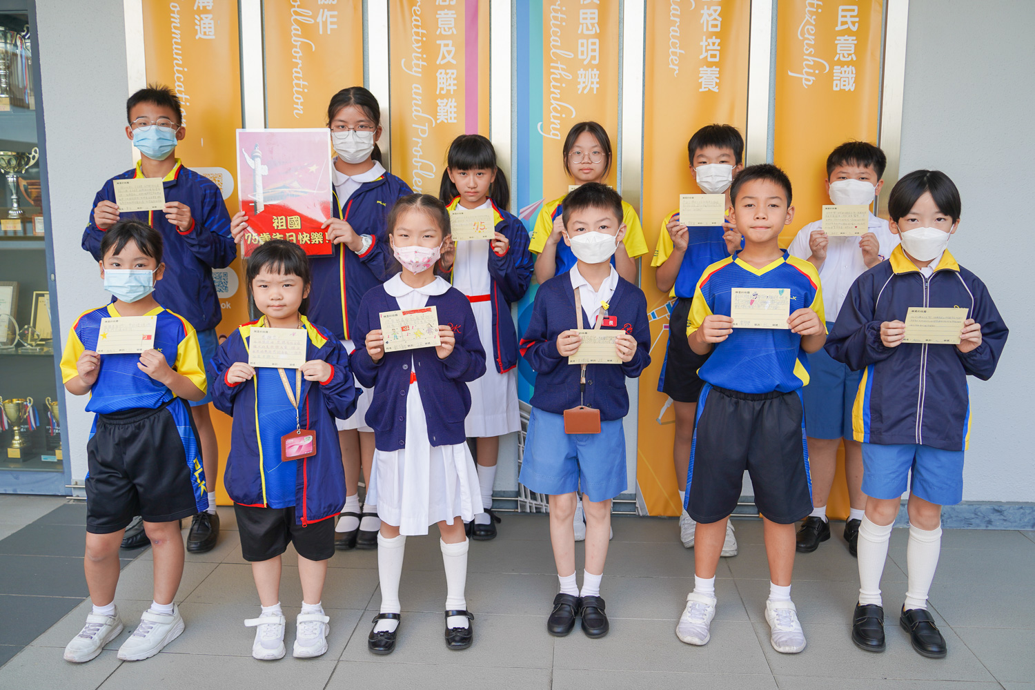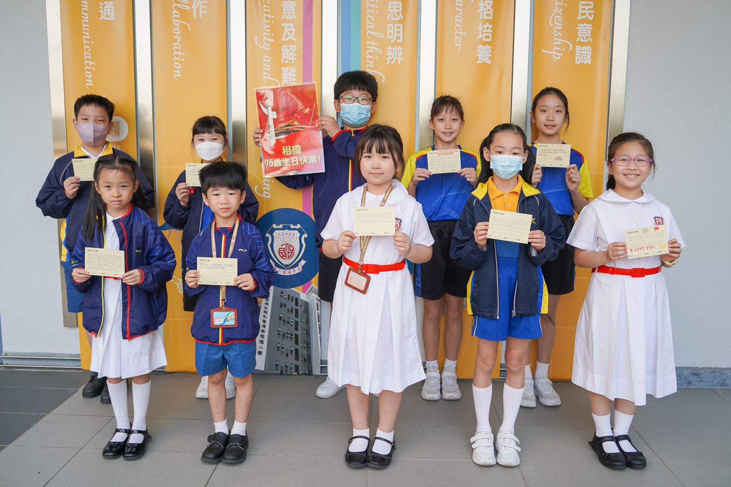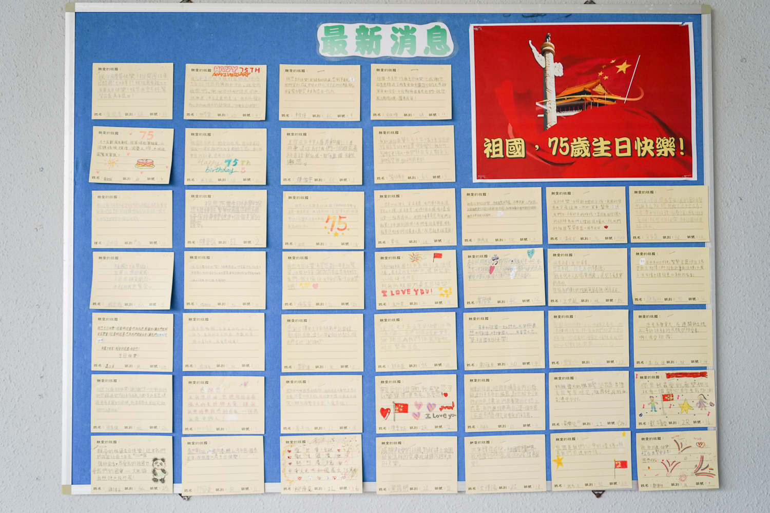 此外,我們全校同學均在學校設計的慶賀祖國成立75周年賀卡中,寫上祝福祖國的話,同賀祖國75歲生日快樂!